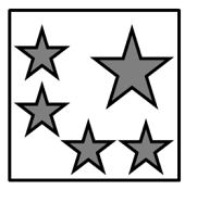 Die Logik: In jedem Feld erscheint eine bestimmte Form mehrmals. Die Größe der Form kann variieren, obwohl es immer eine Form gibt, die deutlich größer ist. Die Anzahl der Formen in einem Quadrat entspricht der Anzahl der Seiten jeder Form. So besteht beispielsweise die zweite Option aus Diamanten. Ein Diamant hat vier Seiten und so gibt es vier Diamanten in der Box. Option fünf ist ungerade, weil sie dieser festgelegten Regel nicht folgt. Ein Stern hat 10 Seiten und es gibt 5 (nicht 10) Sterne im Quadrat.